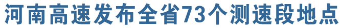 大河网讯 (记者 宋向乐)3月22日,大河网记者从河南省高速交警总队获悉,省高速交警总队今日发布了《河南省公安厅高速公路交通警察总队关于全省高速公路电子监控设备执法点段的通告》,河南高速交警不仅实施定点测速,而且实施区间测速和停车、倒车、逆行定点抓拍,请广大驾驶员朋友在高速公路上依法、安全、文明驾驶机动车,不要超速行驶、违法停车、逆行或倒车,这样既危险,又将面临处罚。