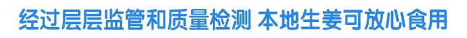 “如果消费者对买的生姜不放心可到就近农贸市场的准入点进行检测。”市农产品质量安全监管科工作人员提醒广大消费者,为了大家的安全和健康,请到正规农贸市场、大型超市购买生姜,凡是经专业部门检测过,持有合格证的农产品,大可放心食用。