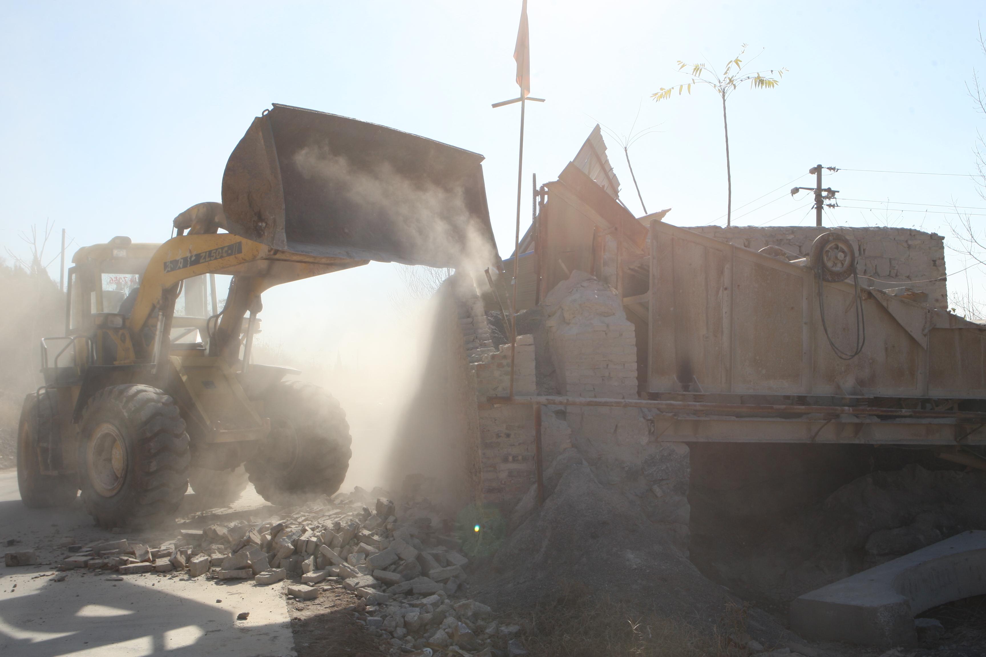 12月2日,解放区影视大道两侧综合整治小分队正用机械车辆拆除一家企业设备。连日来,解放区集中力量快速行动,强力推进影视大道两侧环境综合整治工作。李良贵 摄