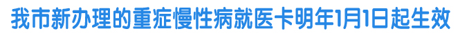 新办理的重症慢性病就医卡明年1月1日起生效
