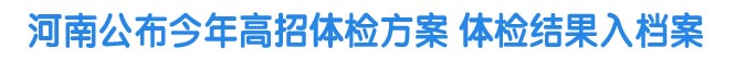 省招生办7日公布河南2014年普通高招全省体检工作方案,凡参加高考的考生必须参加体检,考生要经过眼科、外科、内科等科室系统的体格检查,体检结果将作为考生档案的一部分,供高校录取时参考。