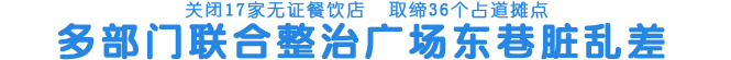 当日,由山阳区政府牵头,该区城管、公安、环保、工商、卫生、街道办事处、食药局、环卫处等部门联合执法,关闭了广场东巷沿街17家无证餐饮门店,取缔了36个沿街占道摊点,拆除了29个沿街占道大棚。以我市“蓝天雷霆”行动为契机,山阳区政府决心要改变广场东巷脏乱差的历史,打造东方红广场商圈新形象。