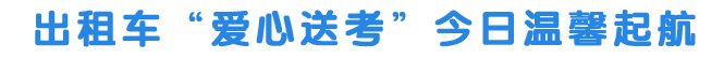 市城市客运管理处还要求,参加爱心送考的出租车司机除了熟悉路线,确保安全、快捷地将考生送到目的地外,还要提供一些温馨服务,比如考生一上车,司机应提醒考生确认是否带齐考试所需证件、文具等。