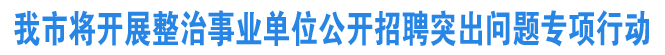 针对我市市民反映强烈的违纪违规进人问题,同时以学习贯彻《条例》为契机,我市人力资源和社会保障局决定从即日起开展整治事业单位公开招聘突出问题专项行动。