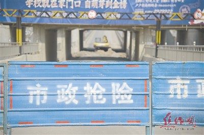 上图 友谊路铁路立交桥下道路正在封闭施工。