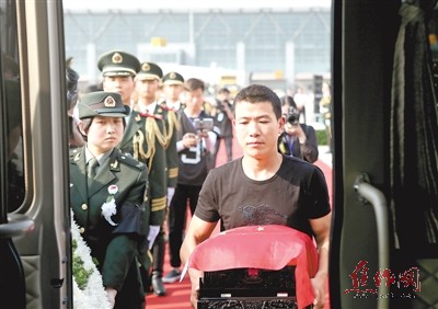 ⬆6月12日,申亮亮烈士骨灰迎接仪式在新郑国际机场举行。本报记者 刘 璐 摄