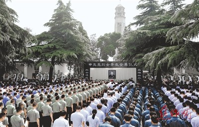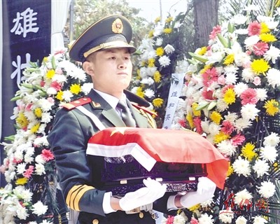 礼兵双手捧着烈士骨灰送往墓地安葬。
