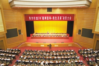 会上,市委副书记姜继鼎宣读了《河南省人民政府关于表彰焦作市商丘市的通报》和《河南省林业厅关于表彰焦作市和商丘市林业局的通报》。副市长王建修作了工作报告,对今年造林绿化工作进行了安排部署。各县(市)区递交了2017年生态建设任务目标责任书。