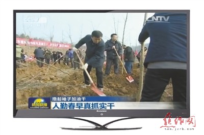 2月3日,正月初七,春节长假后上班第一天,我市在召开植树造林绿色发展动员大会后,开展了全市万人植树活动。2月4日,中央电视台《新闻联播》头条推出的《撸起袖子加油干》栏目,以《人勤春早 真抓实干》为题,报道了各地热火朝天的实际行动,在报道河南省的行动时说: