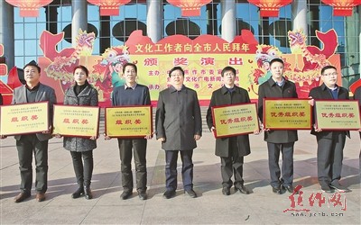 市委书记王小平与2017年焦作市春节文化活动最佳组织奖代表合影留念。