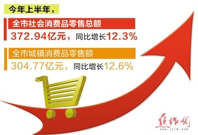 上半年,实现社会消费品零售总额372.94亿元,同比增长12.3%