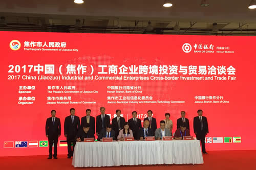 9月17日上午,由中国银行河南省分行和焦作市人民政府共同举办的2017中国(焦作)工商企业跨境投资与贸易洽谈会举行,来自全球20个国家和地区的海外企业与我市企业600多位代表共聚一堂,共商合作发展大计。