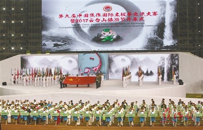 太极圣地逢盛事,山水焦作迎嘉宾。9月16日晚,焦作市太极体育中心体育场五光十色、绚丽多彩,由国家体育总局武术运动管理中心、中国武术协会、河南省体育局、河南省旅游局、焦作市人民政府共同主办的第九届中国焦作国际太极拳交流大赛暨2017云台山旅游节在这里隆重开幕。
