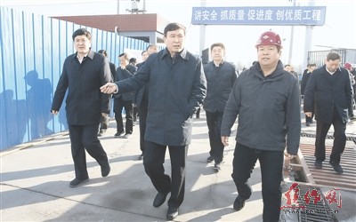 上图 昨日下午,市委书记王小平一行在博爱县南水北调水厂工地督导大气污染防治工作。 记者 赵耀东