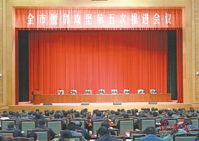 昨日,全市脱贫攻坚第五次推进会在市会议中心圆形报告厅召开。 记者 刘 璐 摄