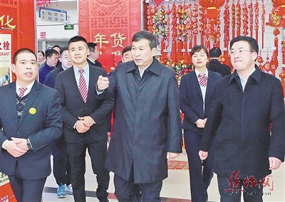 昨日,市委书记王小平等领导到丹尼斯百货,检查我市春节市场供应和消防安全情况。 记者 刘 璐 摄