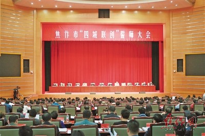昨日,我市“四城联创”誓师大会在市会议中心圆形报告厅召开。 记者 刘 璐 摄