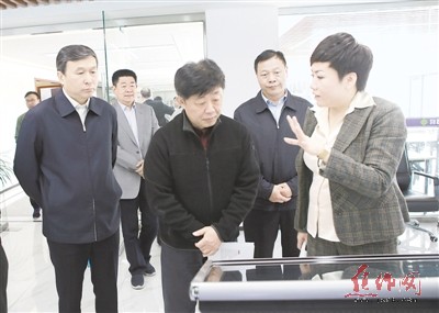 昨日,民政部党组成员、副部长顾朝曦(右三)在温县鑫合电商园实地宣讲调研。市领导王小平、刘涛、王建修等领导陪同调研。记者 刘 璐 摄