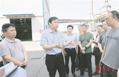 昨日下午,市委书记王小平等领导在孟州市槐树乡上河村盛伟化工有限公司实地督导环境污染整治情况。 记者 刘 璐 摄