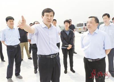 6月23日,市委书记王小平等领导在大沙河中原路桥建设工地督导项目建设情况。记者 刘 璐 摄