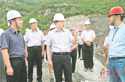 昨日,市委书记王小平等领导在白龙潭水库施工现场调研工程建设进展和应对汛情准备情况。 记者 刘 璐 摄