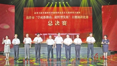 本次主题演讲比赛从7月初启动,各级各单位周密部署,广泛发动,精心组织,历时一个多月,1500余人次参与了比赛。比赛中,各参赛选手立足新时代,贯彻新思想,践行新理念,把握新要求,谈认识、说体会、讲举措、亮承诺,展示了勇于出彩的精神气质,展示了广大干部群众良好的精神风貌和责任担当,推动了全市“学成都佛山、促转型发展”活动扎实深入开展,在全市营造了转型升级、创新发展的浓厚氛围。经过市委宣传部组织的县(市)区组决赛、市总工会组织的企业组决赛、市国资委组织的国资系统决赛,共有10名选手进入昨晚的总决赛。