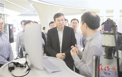 昨日,市委书记王小平等领导在紫光集团有限公司考察。特派记者 赵耀东 摄