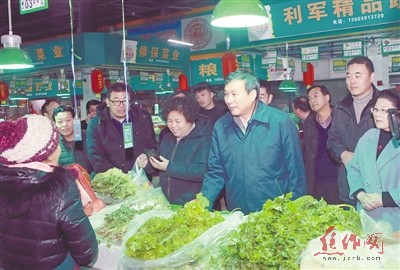 昨日,市委书记王小平等领导在山阳区怡园农贸市场,检查春节市场供应情况。记者 刘 璐 摄