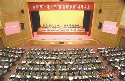 昨日上午,焦作市“一赛一节”暨“四城联创”动员大会在市会议中心圆形报告厅召开。记者 刘 璐 摄