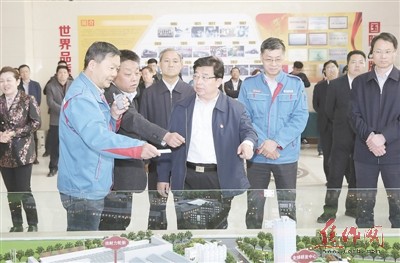 4月19日,市委副书记、市长徐衣显等领导在中站区风神轮胎有限责任公司年产3万条工程子午胎项目现场观摩。