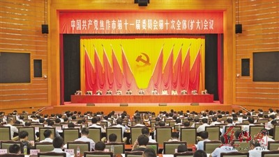 中国共产党焦作市第十一届委员会第十次全体(扩大)会议,于2019年6月24日至25日在市会议中心召开。全会高举习近平新时代中国特色社会主义思想伟大旗帜,全面贯彻党的十九大和十九届二中、三中全会精神,深入贯彻落实习近平总书记在参加十三届全国人大二次会议河南代表团审议时的重要讲话精神以及省委十届九次全会精神,审议讨论了《中共焦作市委、焦作市人民政府关于深入学习贯彻习近平总书记重要讲话精神全面推进乡村振兴战略的实施意见》,对实施乡村振兴战略、做好“三农”工作进行了安排部署,动员全市上下积极顺应新时代发展大势,深入实施乡村振兴战略,强力推动“三农”工作转向高质量,奋力谱写在中原更加出彩中出重彩、更精彩的焦作篇章。