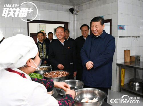 2019年4月15日,习近平在重庆考察时走进石柱土家族自治县中益乡小学师生食堂,了解贫困学生餐费补贴和食品安全卫生情况。