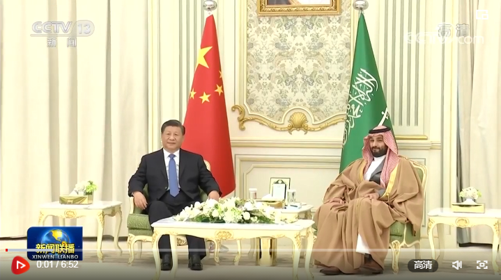 当地时间12月8日中午,国家主席习近平在利雅得王宫同沙特王储兼首相穆罕默德举行会谈。