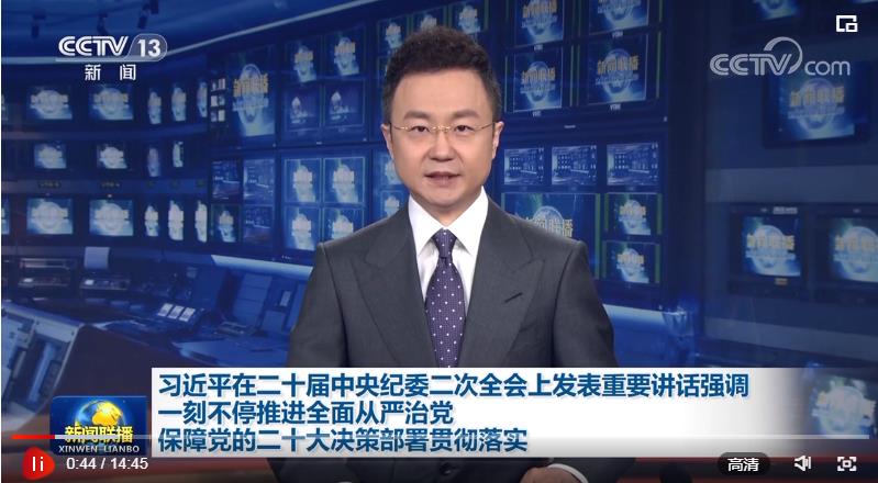 中国共产党第二十届中央纪律检查委员会第二次全体会议于1月9日在北京开幕。中央纪律检查委员会常务委员会主持会议。9日下午李希代表中央纪律检查委员会常务委员会作题为《深入学习贯彻党的二十大精神,在新征程上坚定不移推进全面从严治党》的工作报告。