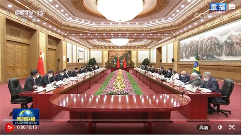 卢拉表示,我非常荣幸和骄傲率庞大代表团第四次访华,这是我这次就任总统以来首次出访美洲之外的国家,体现了巴方对中国的热爱以及对发展巴中关系的重视。中国是当今世界政治、经贸、科技等各领域不可或缺的重要力量,为促进世界和平与发展发挥着至关重要的作用。巴西从推动建立公正合理的国际秩序的战略高度致力于同中国发展更紧密的关系。全面加强对华关系也是巴西立法机构和社会各界的共同强烈愿望,我很高兴参观了华为公司并会见了中方有关企业代表,对中国在5G等领域发展成就深表钦佩,希望拓展两国相关领域合作,欢迎中国企业赴巴投资合作,助力巴实现数字转型和低碳发展。相信巴中深化扩大合作将有助于巴“再工业化”进程,有助于解决脱贫等问题,更好造福人民。巴方愿同中方密切教育、文化等领域交流合作,增进双方人民相互了解。巴中在很多重大国际问题上拥有共识和共同利益,双方都捍卫多边主义和国际公平正义,巴方愿同中方加强在二十国集团、金砖国家等多边框架内战略协作,就国际金融、应对气候变化和环境保护加强协调合作,为推动发展中国家摆脱不公平规则束缚、实现更加公平平衡发展作出贡献。我相信,巴中关系的未来必将更加美好。