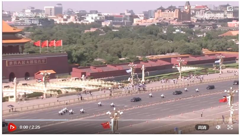 天安门广场上鸣礼炮21响。