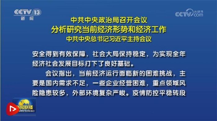 联播+7月24日,中共中央政治局召开会议,分析研究当前经济形势,部署下半年经济工作。习近平总书记主持会议。