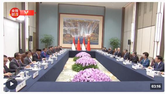 习近平指出,欢迎老朋友佐科总统先生来华出席成都大运会开幕式。去年,我们在3个多月时间里实现互访,共同开启两国共建命运共同体的新篇章。