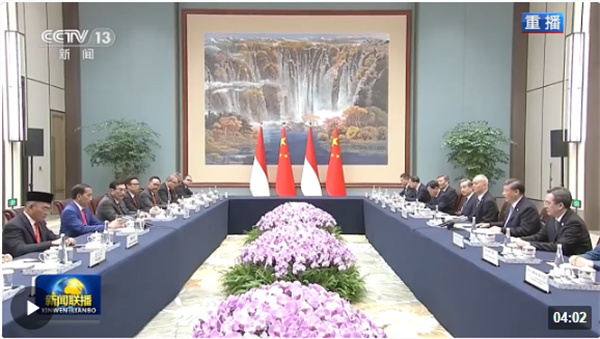 △当天,中印尼两国元首在“锦蓉庄”举行会见。(总台央视记者韩锐拍摄)