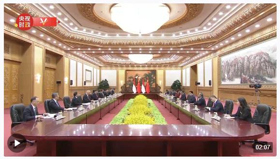 习近平指出,很高兴同老朋友佐科总统再次会面。两个多月前,我们在成都大运会开幕式期间相聚的情景仍然历历在目。欢迎你来华出席第三届“一带一路”国际合作高峰论坛并对中国进行国事访问。