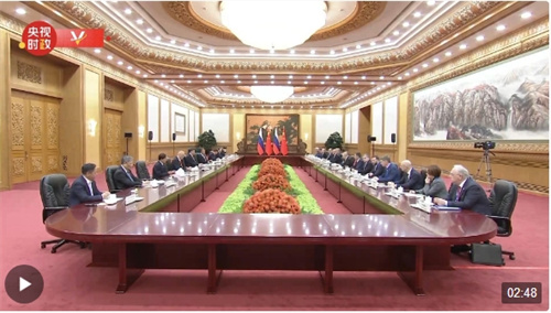 10月18日上午,国家主席习近平在人民大会堂同来华出席第三届“一带一路”国际合作高峰论坛的俄罗斯总统普京会谈。
