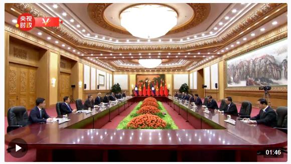 △中老领导人会见现场。(总台国广记者李晋拍摄)