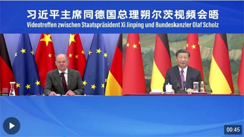 11月3日下午,国家主席习近平同德国总理朔尔茨举行视频会晤。