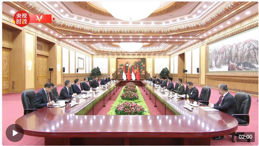 4月1日下午,国家主席习近平在北京人民大会堂同印尼当选总统普拉博沃举行会谈。