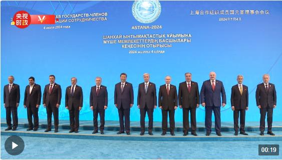 当地时间7月4日上午,国家主席习近平在阿斯塔纳独立宫出席上海合作组织成员国元首理事会第二十四次会议。习近平同上海合作组织成员国领导人集体合影。