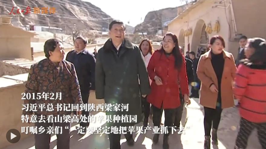 2015年2月,总书记回到陕西梁家河,特意去看山梁高处的苹果种植园,叮嘱乡亲们,“一定要坚定地把苹果产业抓下去。”此时,声势浩大的脱贫攻坚正如火如荼。