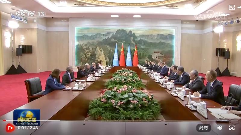 古特雷斯表示,感谢中国长期以来对联合国坚定有力的支持。当前,多边主义、国际法、联合国权威面临挑战,国际治理架构急需改革,重温80年前成立联合国的初心和价值理念正当其时。中国为维护国际法、确保国际法治作出重要贡献,成为捍卫多边主义的基石。联合国愿加强同中方的合作,维护联合国宪章宗旨和原则,捍卫国际关系基本准则,推进世界多极化,提高发展中国家的代表性,让联合国在国际事务中发挥更大作用。双方要加强在全球治理体系改革、人工智能、应对气候变化挑战等方面的合作,以更好服务人类共同福祉。