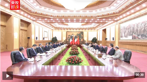 12月4日上午,国家主席习近平在北京人民大会堂同来华进行国事访问的法国总统马克龙举行会谈。