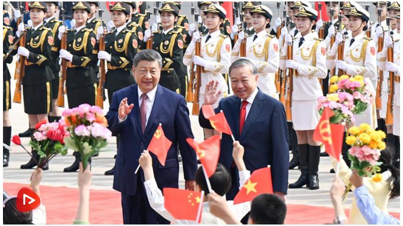 苏林表示,这是我当选越南国家主席后首次出访,也正值习近平总书记、国家主席去年对越进行历史性访问一周年,充分反映了总书记同志所说的“邻里越走越亲”。越方感谢中国共产党、政府和人民对越共十四大提供的重要政治支持,愿始终同中方赓续传统友谊,推动两国全面战略合作伙伴关系和具有战略意义的命运共同体不断发展。越方祝贺中国胜利完成“十四五”规划并取得历史性成就,相信中方将顺利实施“十五五”规划,不断推进高质量发展和社会主义现代化建设,如期实现第二个百年奋斗目标,并成为世界和平发展的支柱力量和首要动力。