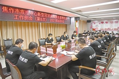 市疾控中心召开疫情防控工作例会。
